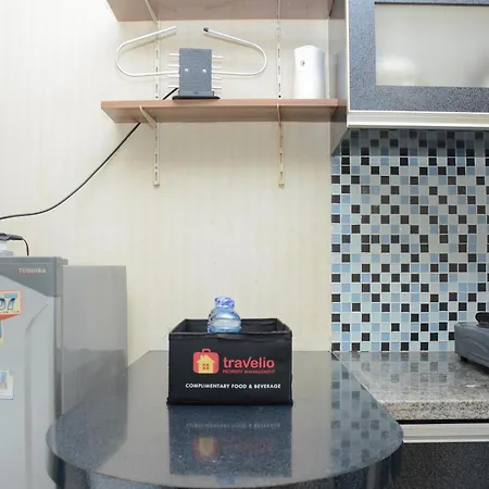 La cocina está equipada con un hervidor eléctrico y una placa. El Minimalist Studio Room At Kebagusan City Apartment By Travelio está a 5 km del Aeropuerto Yakarta Halim Perdana Kusuma, facilitando el acceso para los viajeros.